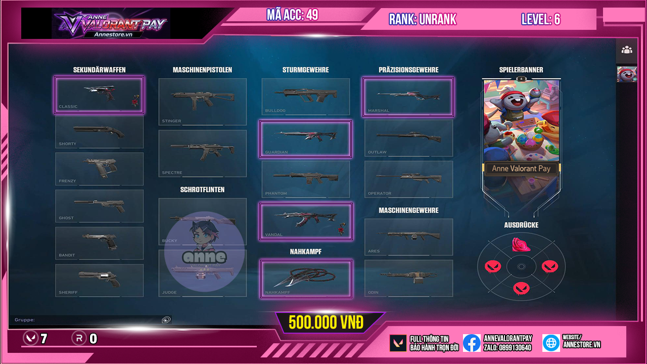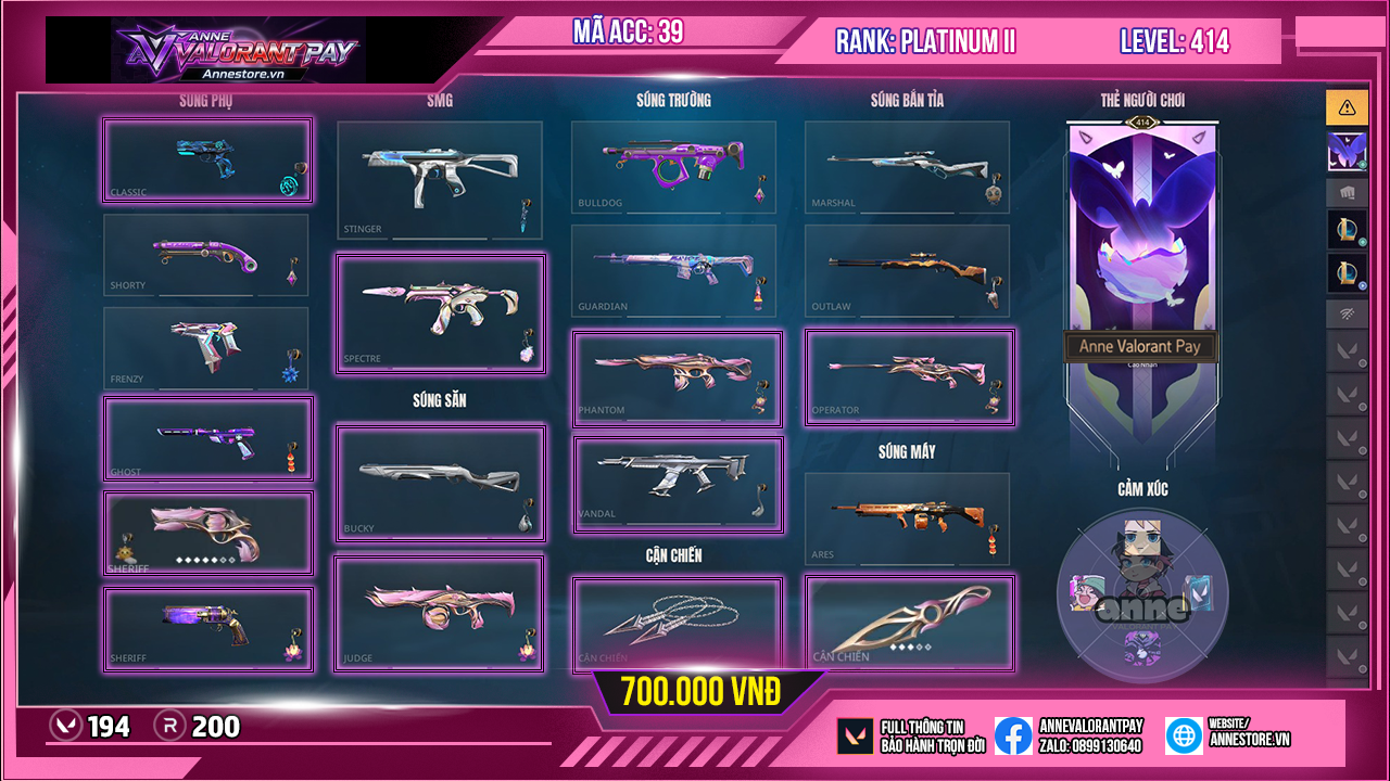 Lưu ý cú pháp: Tên Nhân Vật # Số ID VD: annevalorantpay#0000