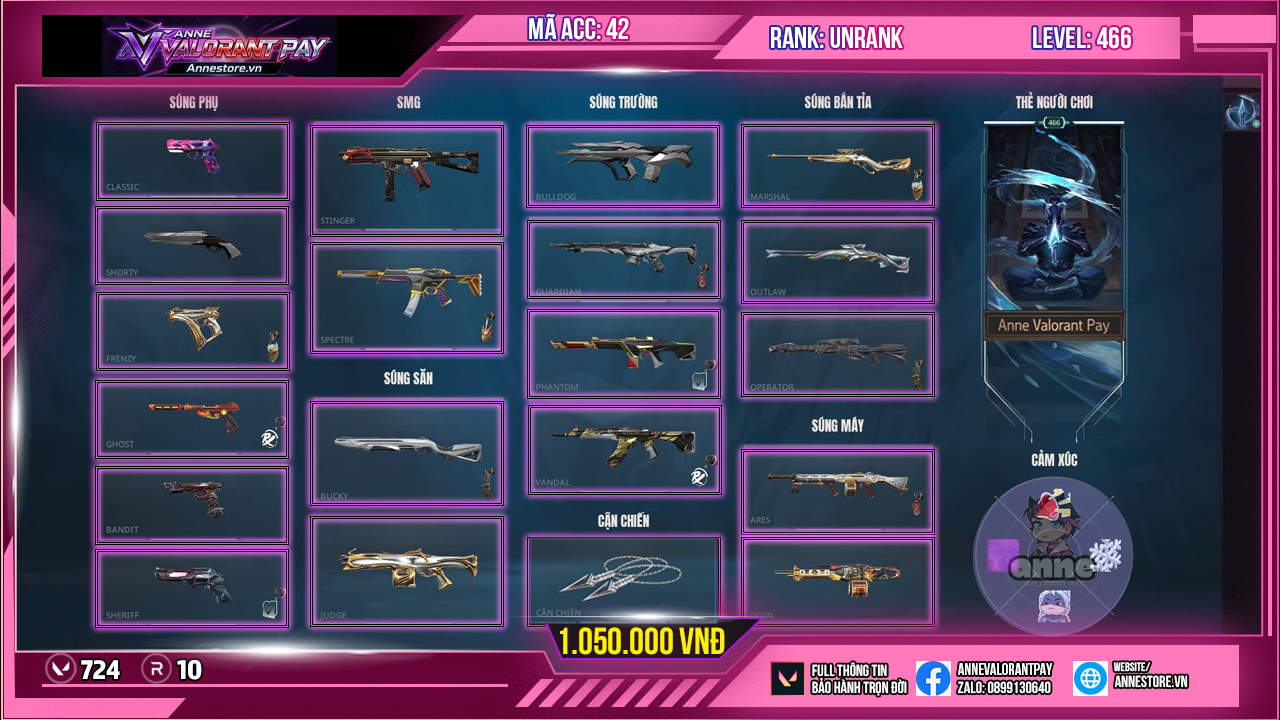 Lưu ý cú pháp: Tên Nhân Vật # Số ID VD: annevalorantpay#0000